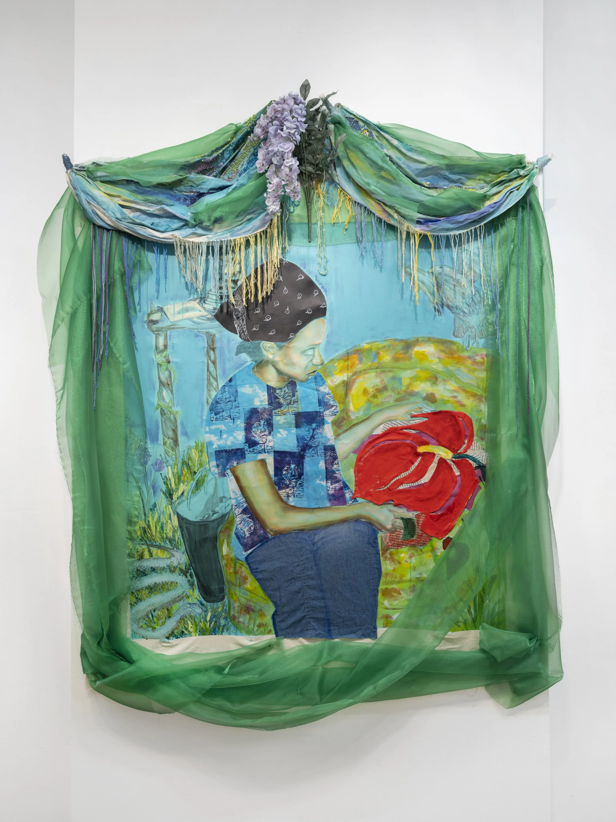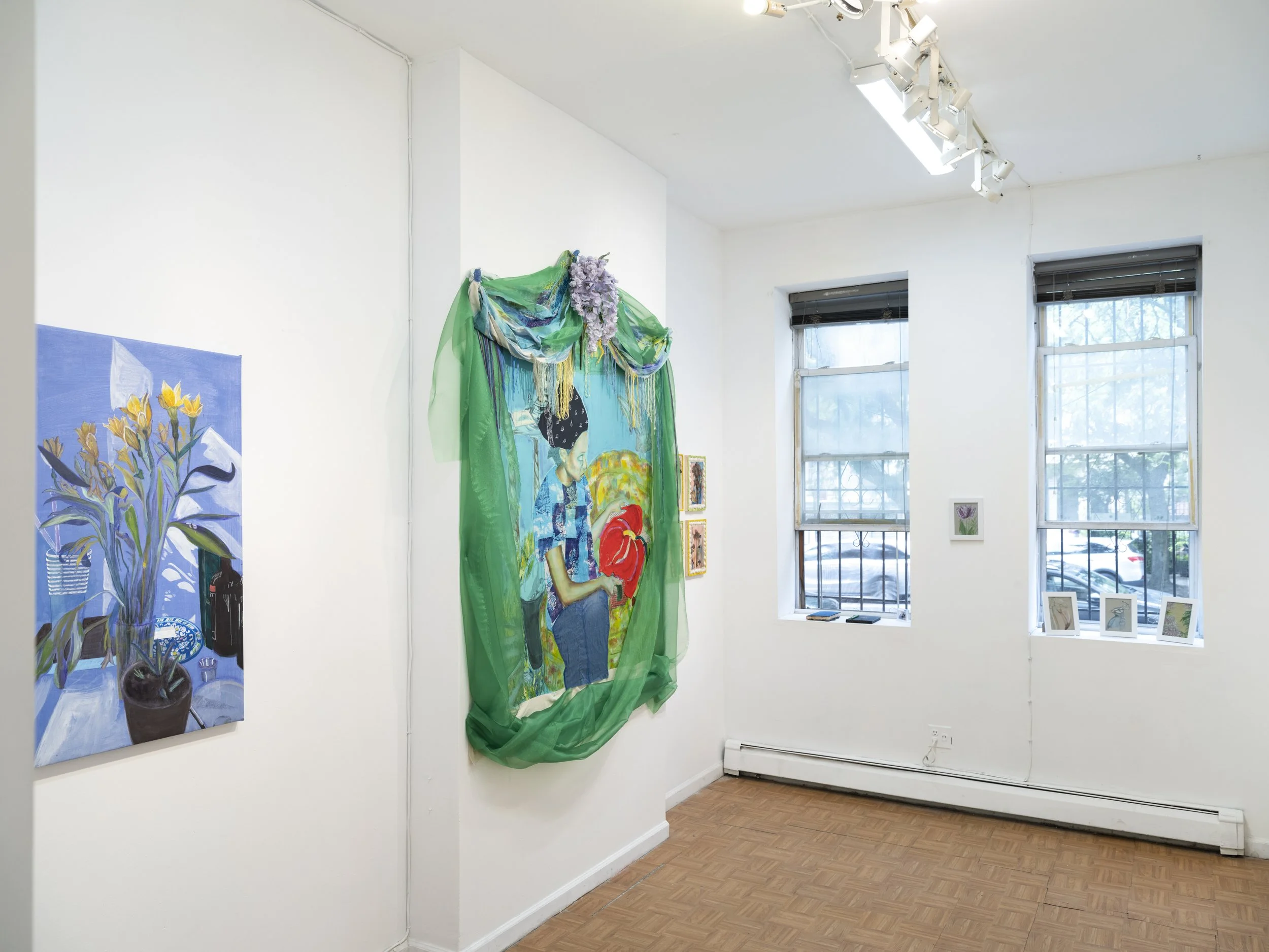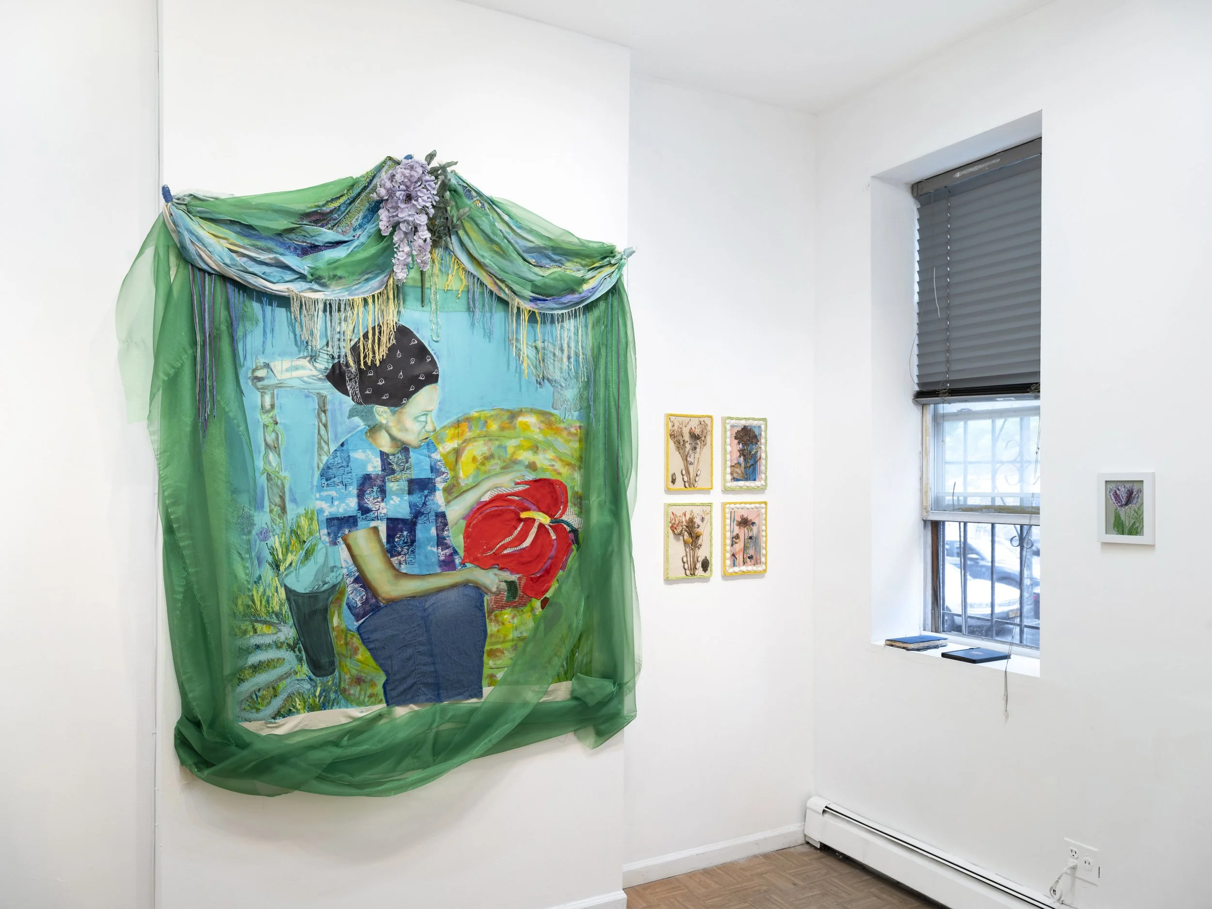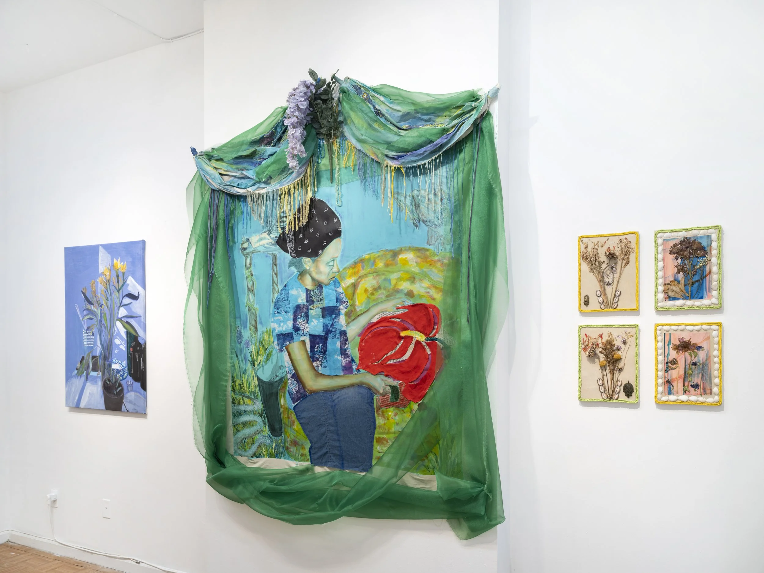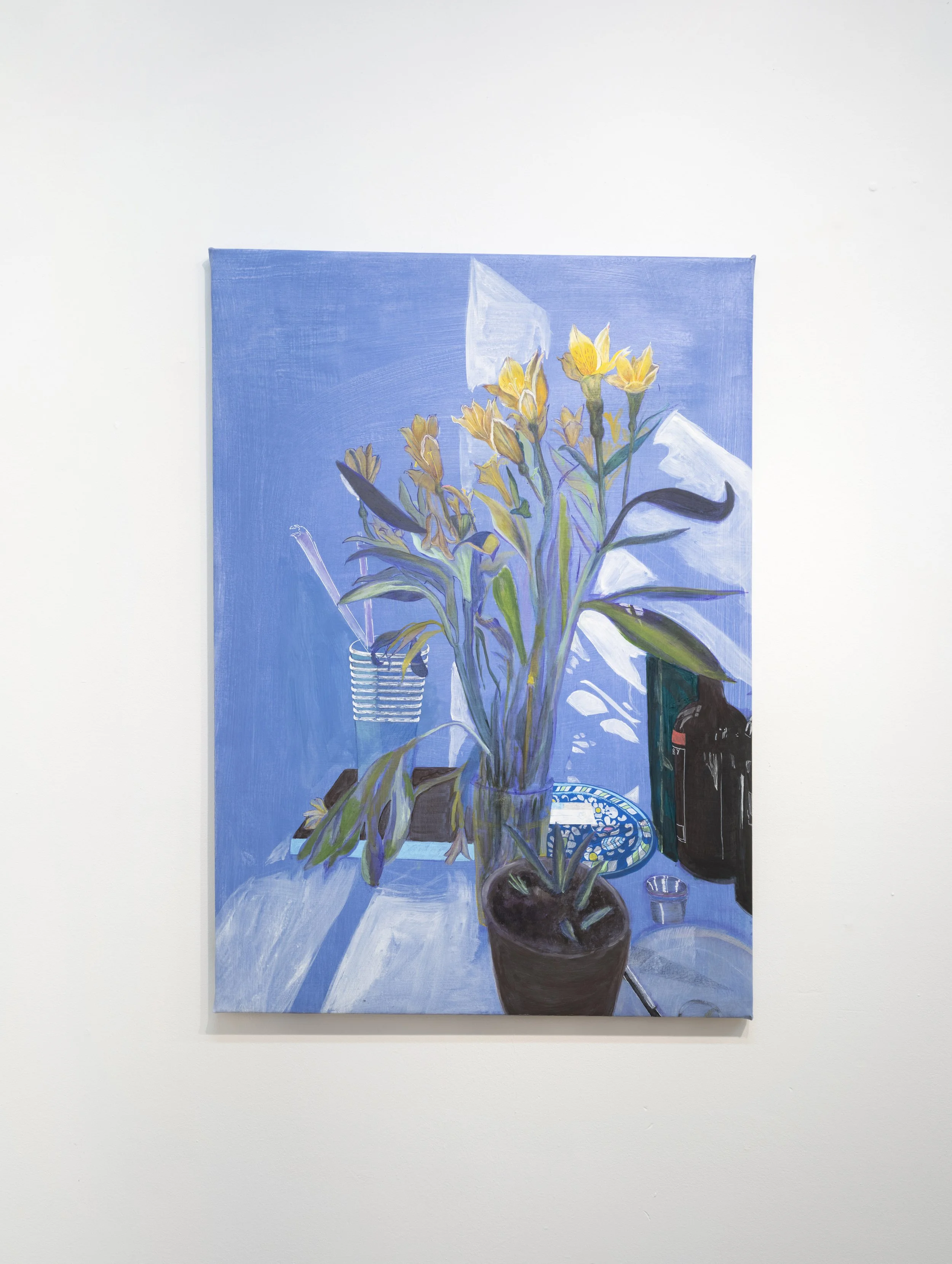 This exhibition is entitled “There is another Sky” after a poem by Emily Dickenson. I love the way that this text expresses dualities, the way that it articulates Dickenson’s abilities to create both real and imaginary spaces filled with plants, sunshine and color. I use this piece as a point of departure for my body of work because it verbalizes many of the things I’ve been thinking about– passing time, aging and changing, as Emma Baldwin wrote in an analysis of the poem. These past couple years have been tumultuous from a historical standpoint. Many of us have dealt with the trials and tribulations of global pandemic, economic hardships, and deaths. I hope that I can use this as a source of personal and collective healing, a space where I can contemplate these blurry boundaries between the real world and the imaginary spaces that we construct to make our ways through the modern age. I am for this space to exist as a physical manifestation (or embodiment) of the hypnotic language that Dickenson uses via paintings, sculptures, and installations. In this space, I hope to paint another sky.